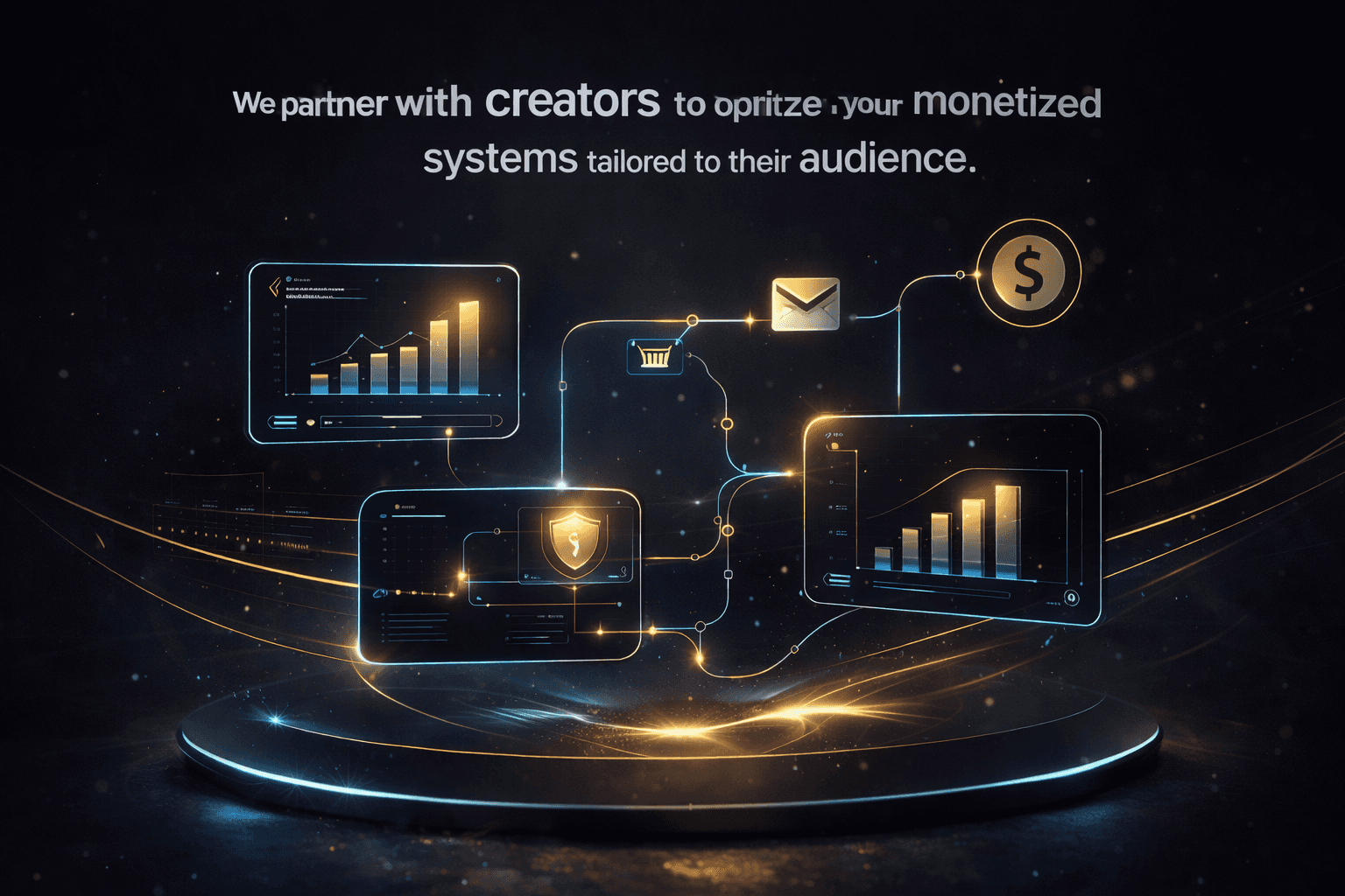 Think of us as your silent business partner, monetization operator, and back end revenue team. We stay invisible so you stay authentic. No gimmicks, no pressure sales, just smart systems and ethical, performance based monetization.